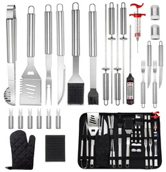 Atacado 27pcs Aço Inoxidável BBQ Tool Set Customizable Outdoor Cozinha Acessórios