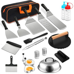Mingxiang 34 adet yassı paslanmaz çelik kalbur aksesuarları kiti Turners ve kürek ızgara Metal alet takımı için